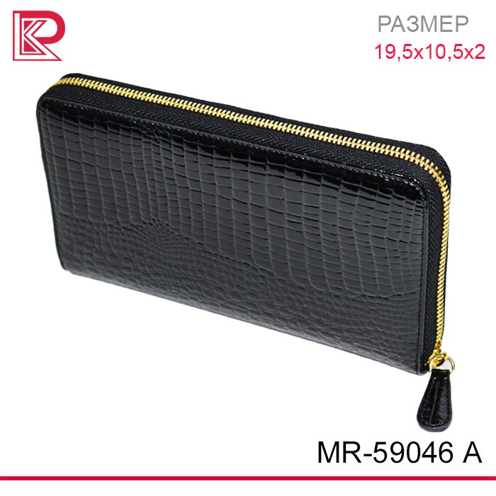 Кошелёк MORO & JENNY лак, на молнии, рептилия, цвет: черный