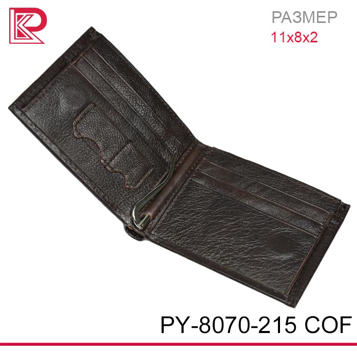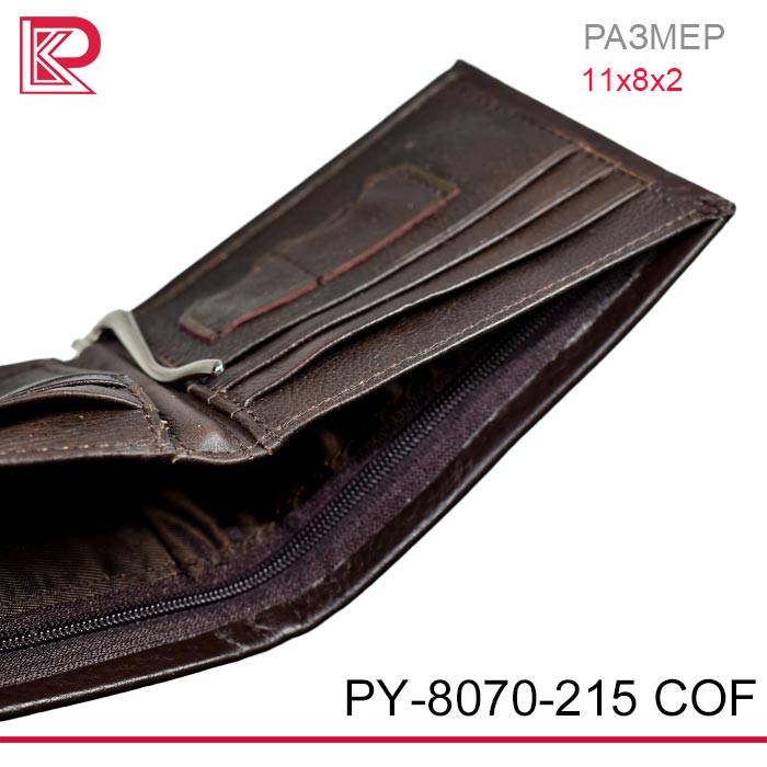 Классическое портмоне + зажим DONIYA внутри 8 отделов для карт, два основных отдела для купюр, одно из которых на молнии, отдел для мелочи на молнии на задней части. Клапан кошелька на магнитах.
