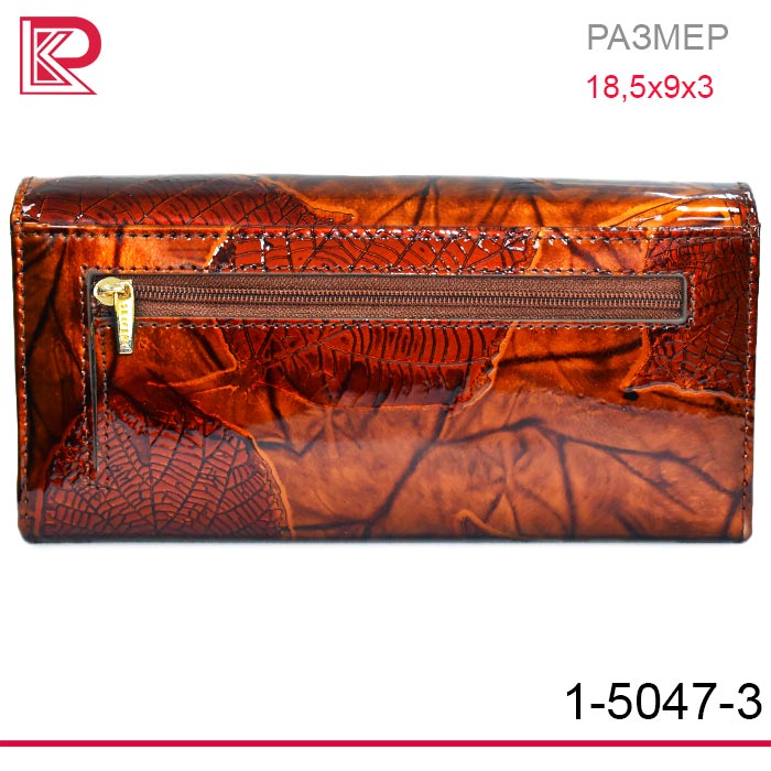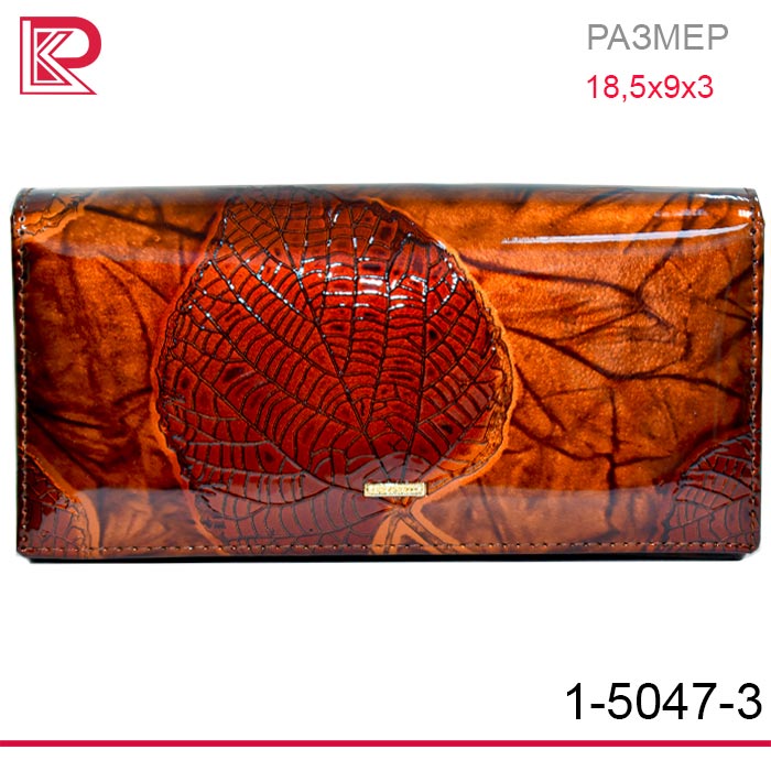 Кошелёк SEZFERT лаковый, ЛИСТЬЯ, класик, на магните, монетница внутри, цв: коричневый