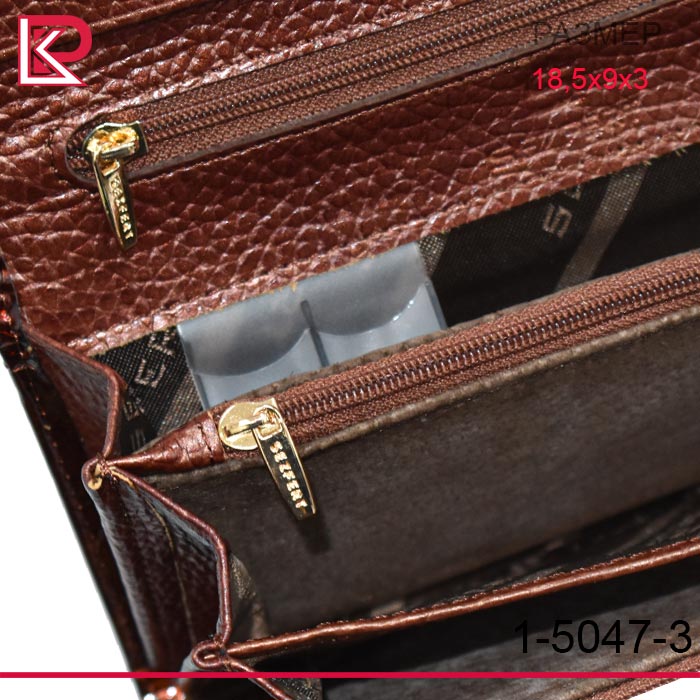 Элегантный женский кошелек «Sezfert» коричневого цвета дополненным изображением листочков. Основной внутренней отдел имеет два открытых отсека и один на молнии. На внешней плоскости внутренней части кошелька имеются отсеки для кредитных карт и визиток. На задней части карман на молни. Изделие выполнено из натуральной кожи. Упаковано в фирменную коробку от производителя.