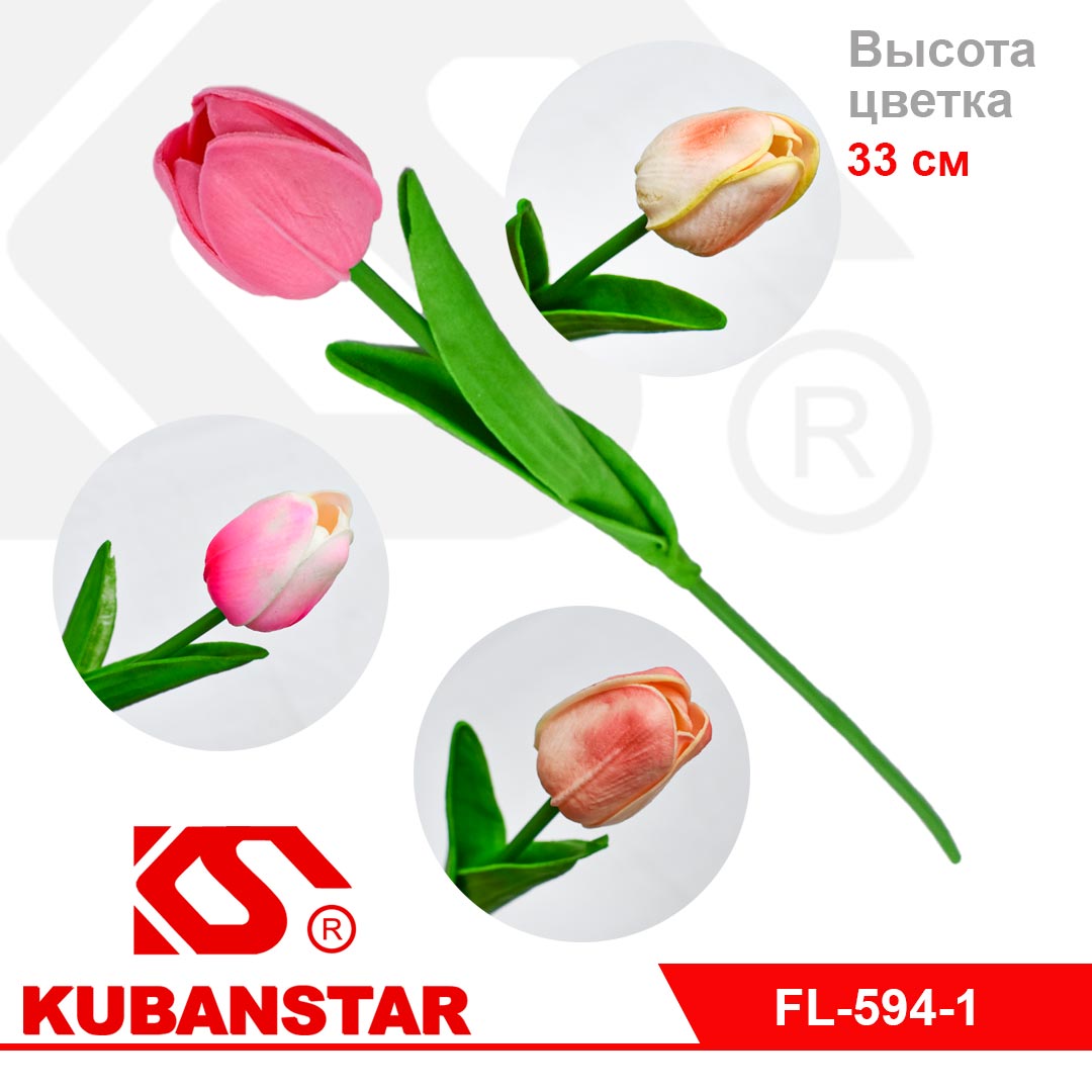 Цветок ТЮЛЬПАНА, PU, 33см, в ассортименте 6 расцветок