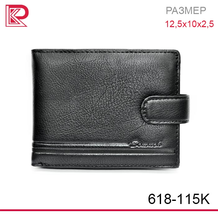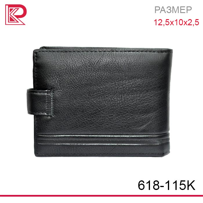 Стильное компактное портмоне черного цвета выполнено из эко-кожи. Закрывается хлястиком на кнопку.