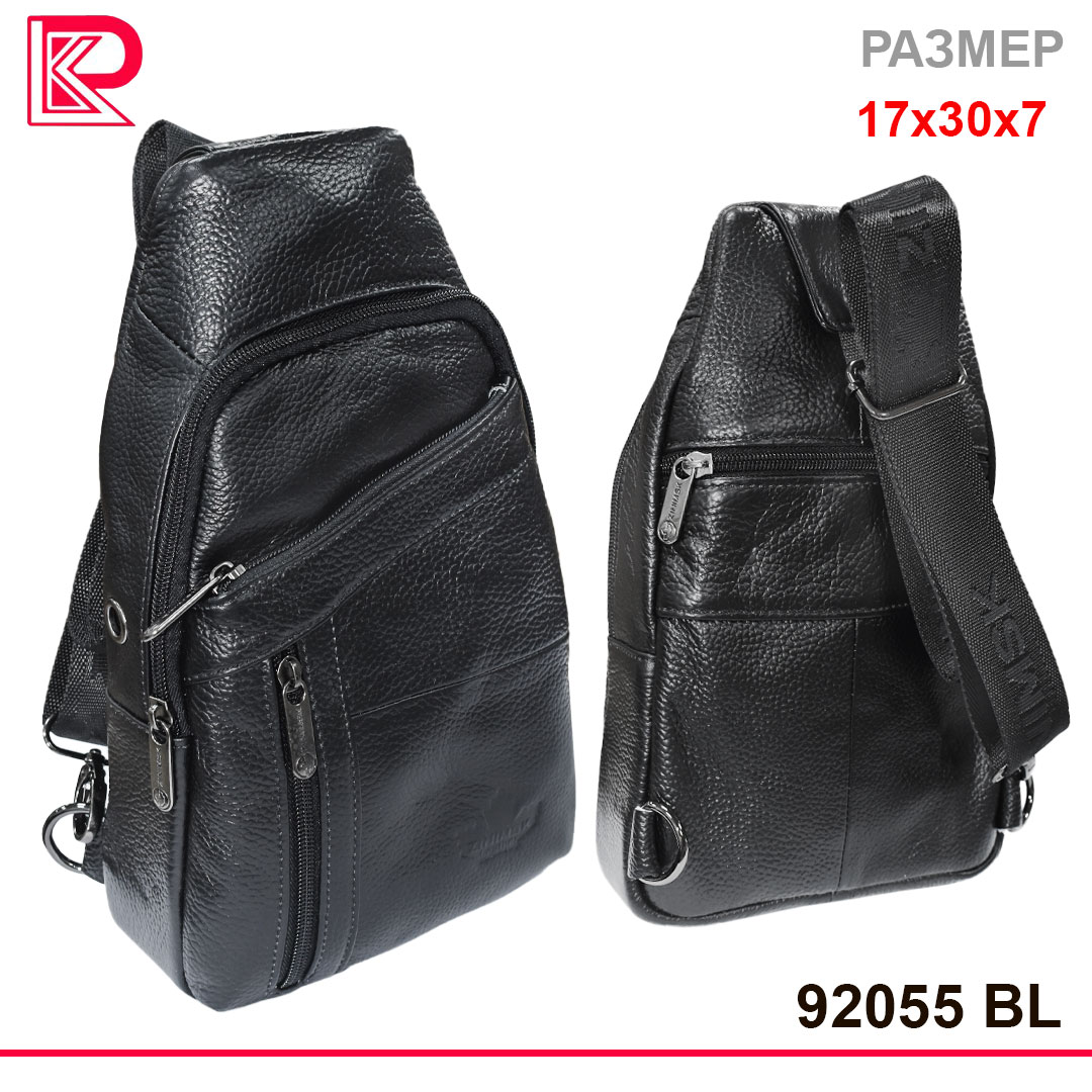 Стильная мужская сумочка из натуральной кожи, снабжена удобной ручкой для переноса в руках и съемным ремнем с карабинами в комплекте. Центральное большое отделение, как и второе отделение поменьше на тыльной стороне сумки закрывается на молнию. Во втором имеется небольшой дополнительный карман для документов на молнии. На внешней лицевой стороне один карман закрывается на магнитный клапан, другой - на молнии. На тыльной внешней стороне еще один дополнительный отдел для монет на молнии. Изделие украшено тиснением логотипа. Упакована сумка в пакет.