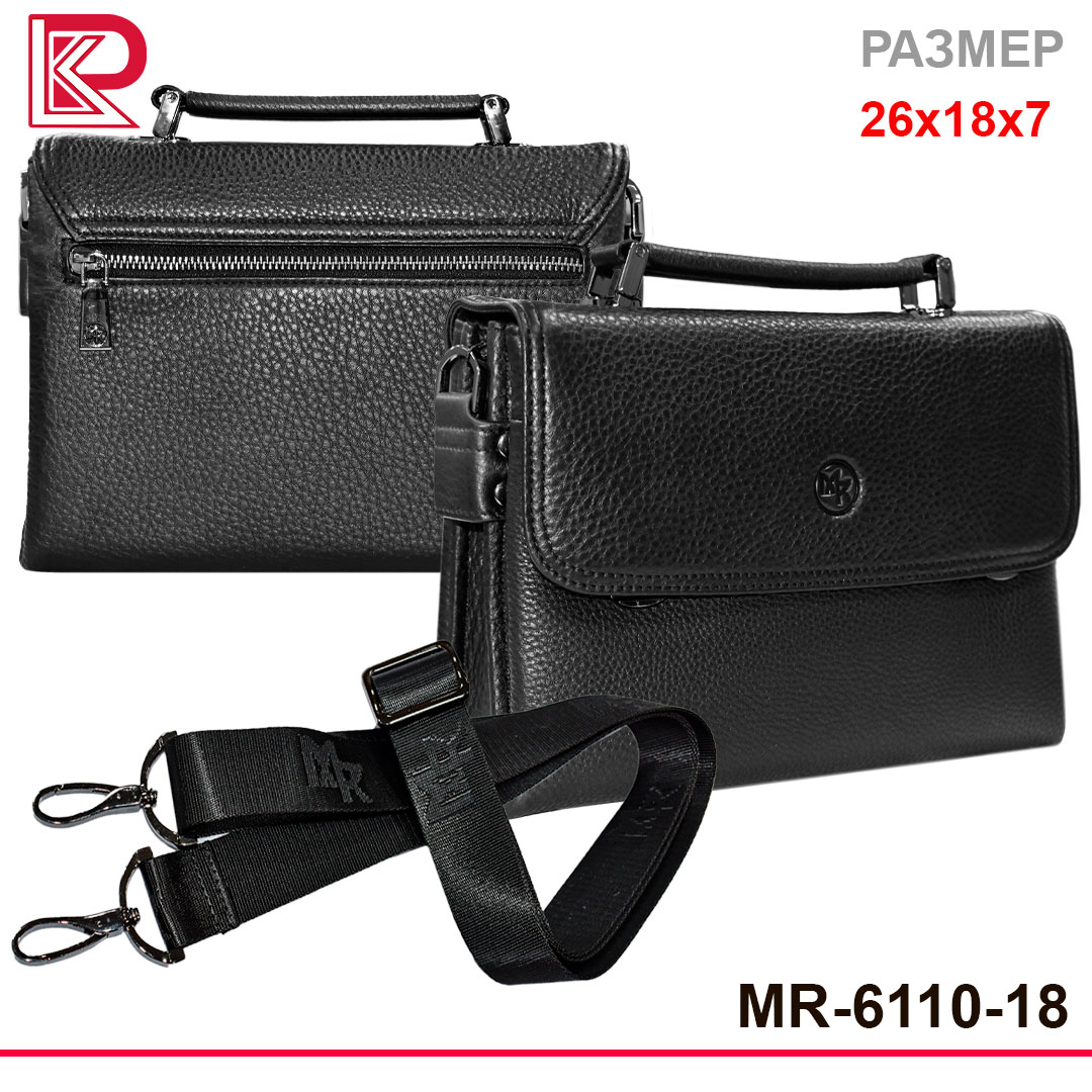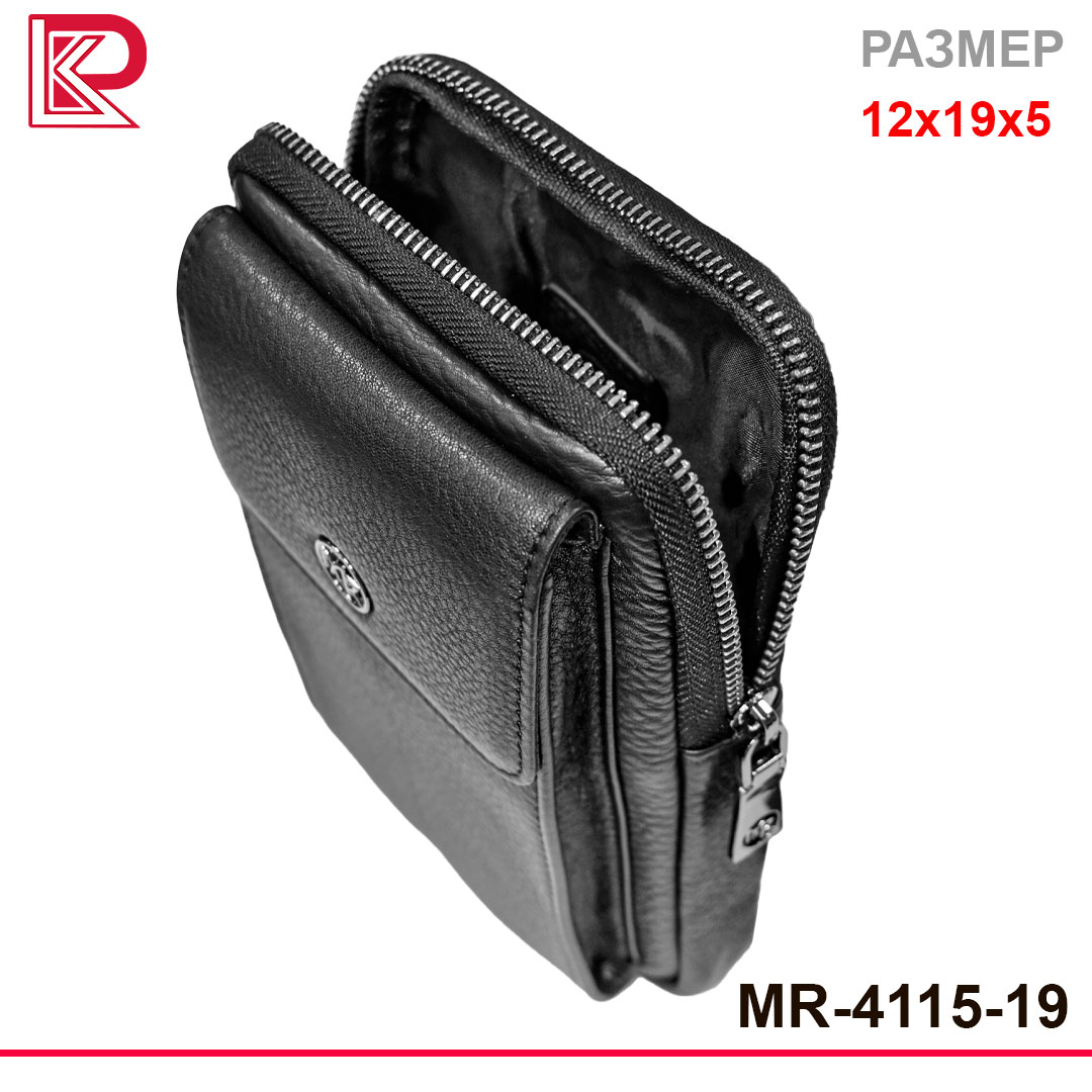 Компактная мужская сумочка из высококачественной матовой натуральной кожи черного цвета. Основной отдел закрывается на молнию и имеет внутри дополнительный открытый карман. На лицевой внешней стороне модели - карман, закрывающийся на магнитный клапан. На тыльной внешней стороне - карман на молнии. Для переноски на сумке имеются крепления для съемного наплечного ременя с карабинами (есть в комплекте). Изделие украшено декоративным металлическим элементом с названием бренда. Упакована сумка в пакет.