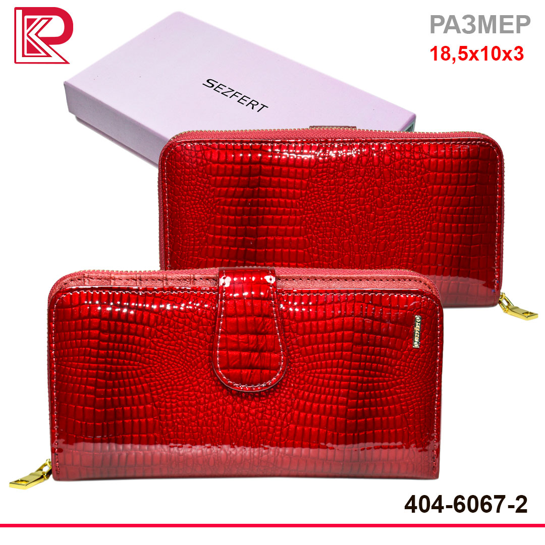 Кошелёк на молнии SEZFERT внешняя кредитница на кнопке, лак, цв красный