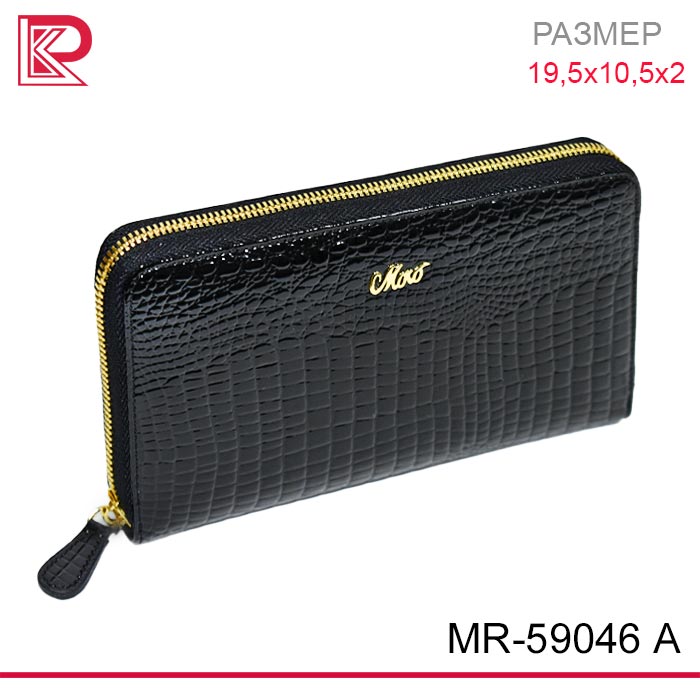 Кошелёк MORO & JENNY лак, на молнии, рептилия, цвет: черный